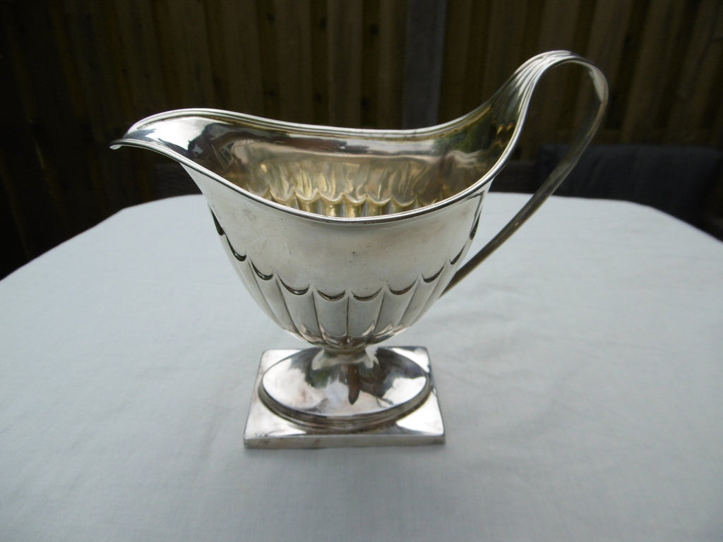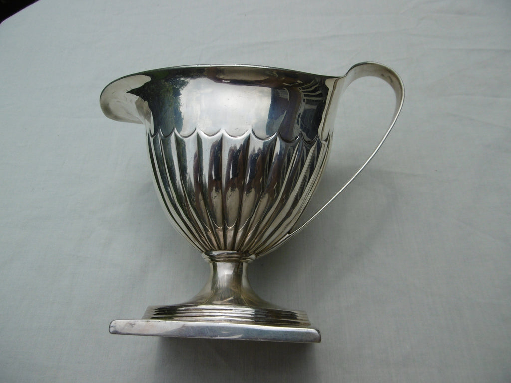 This is a top quality silver jug made in London in 1791 by Fountain and Pontifex. It is in very good condition, very clear hallmarks under the base, beautiful fluted decoration. It is 13cms high and weighs 190 grams