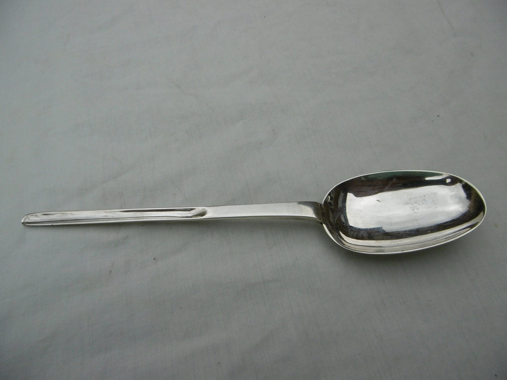 This is a beautiful spoon made in London in 1700 by Benjamin Watts. Its in very good condition, fine bowl and beaded rat tail, nice hallmarks, very clear date letter, the maker is lightly rubbed but readable, it is 22.5cms long and weighs 53 grams