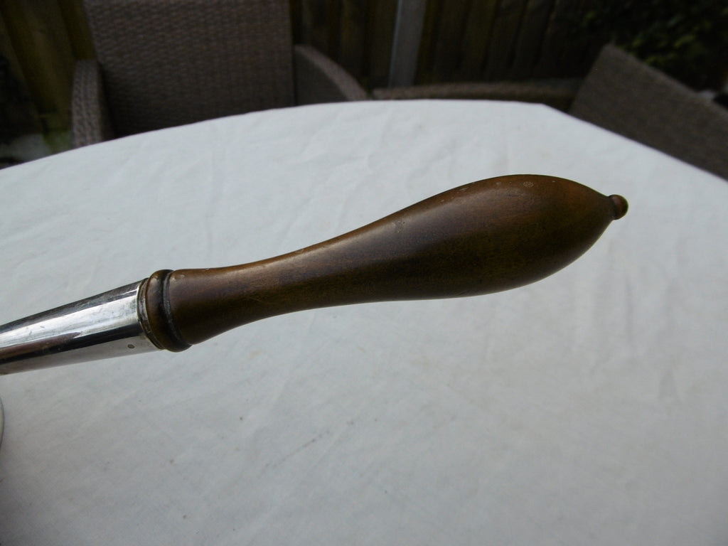 This is a lovely brandy pan made in Plymouth in c1720 by Samuel Blatchford, it is in very good condition, the hallmarks are maker struck 3 times, it has a nice wooden handle, is is 9cms diameter and weighs 195 grams, it has period owners initials ML under the base.
