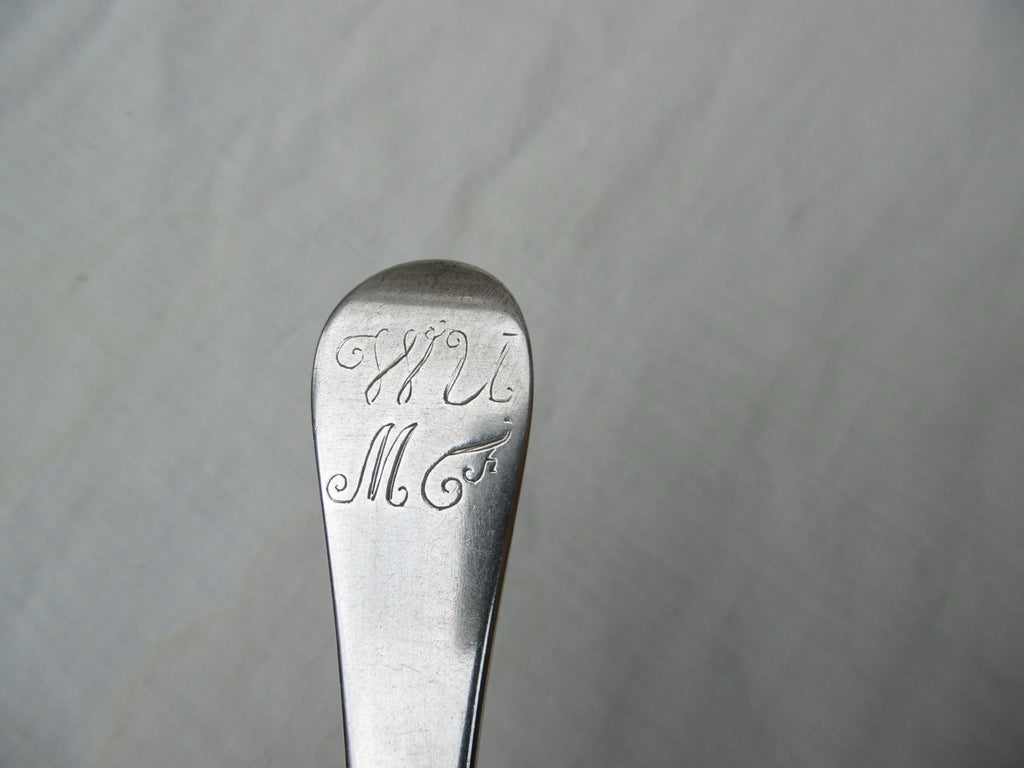 This is a rare spoon made in Perth in c1730 by James and Francis Brown, it is in very good condition , good hallmarks, it has a lovely bowl with a short Rat tail, it has lovely period owners initials, it is 20cms long and weighs 64 grams, Perth silver from this period is rare.