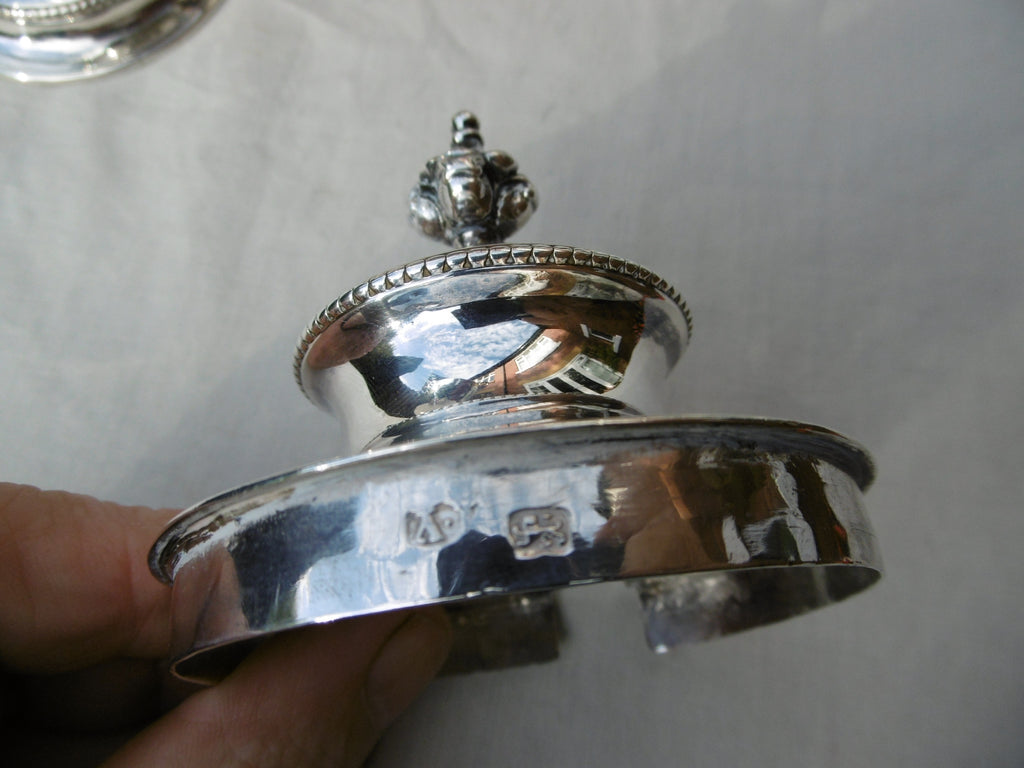 This is a beautiful vase possibly for sugar or preserves made in London in 1771 by James Young, it is in very good condition , nice clear hallmarks under the base with matching makers mark on the lid, it is really well made, lovely beaded decoration and finial, it has a nice lightly rubbed period armorial. it is 22cms high and weighs a heavy 525 grams with the ladle, I am including a nice period ladle.