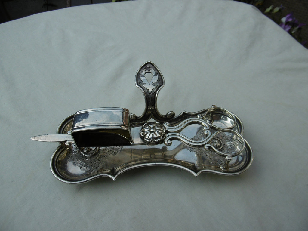 1841 stunning silver snuffer stand and snuffers , unusual design see photos
