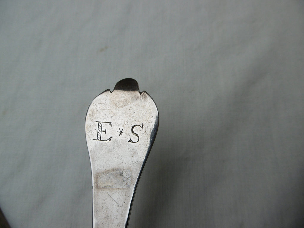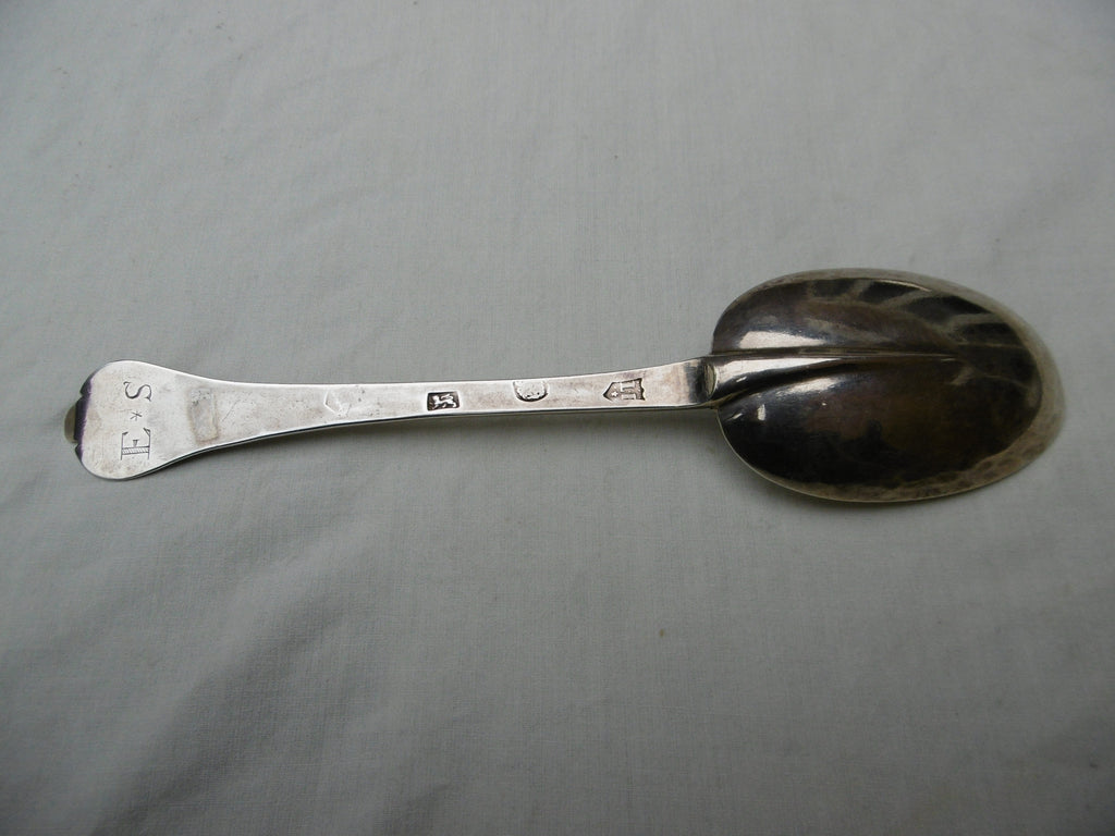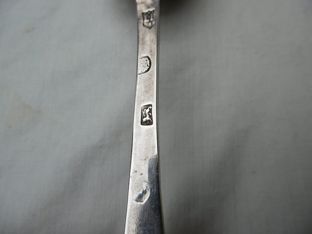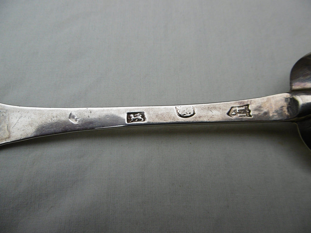 This is a fine spoon made in London in 1689 by Lawrence Jones, its in very good condition, very nice bowl and rat tail, the hallmarks are all good except the date letter but I am sure its 1689, it is 19.5cms long and weighs 48 grams, it has lovely period owners initials ES.