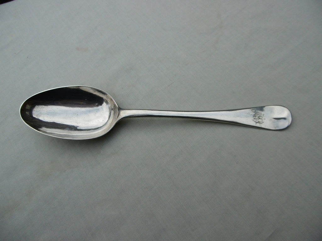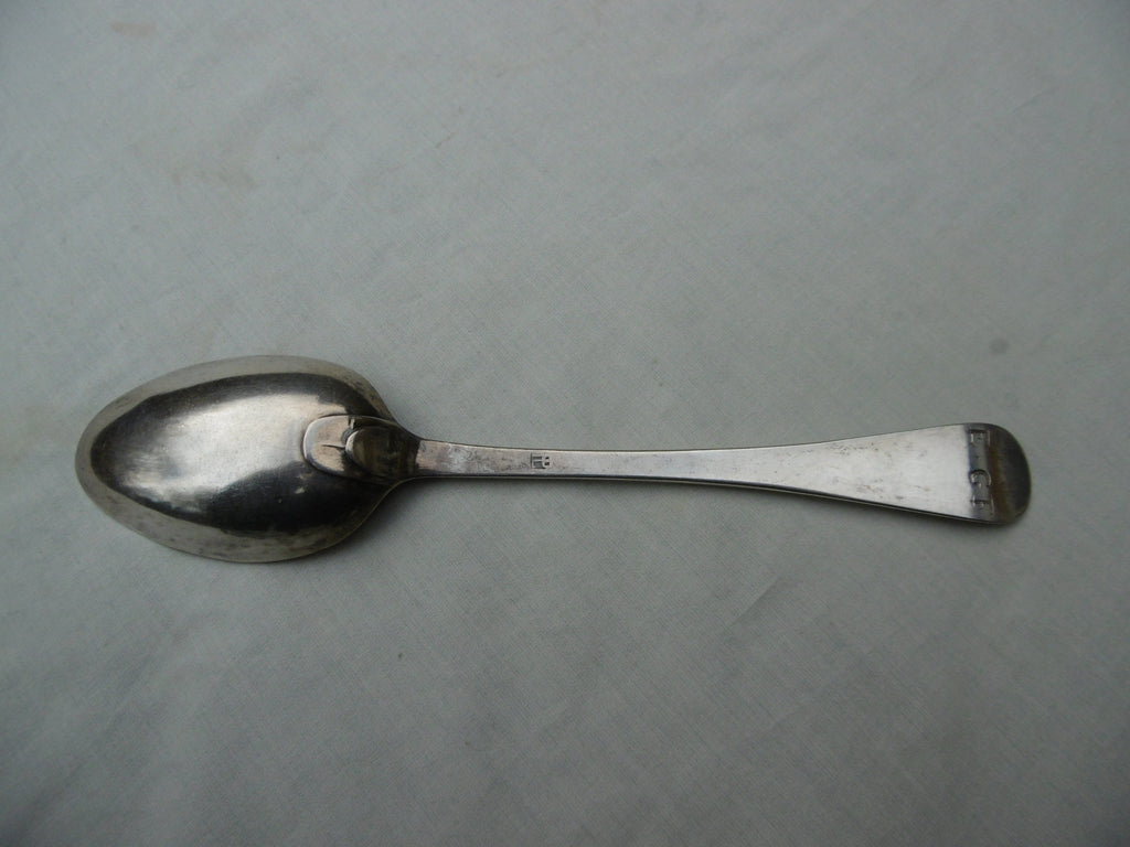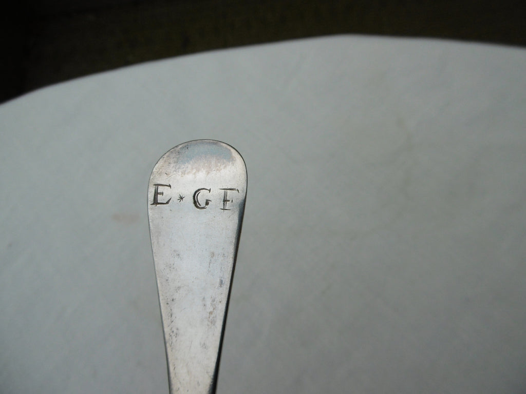 This is a fine spoon made in Jersey in c1770 by maker IL crowned possibly John Limbour it is in very good condition, nice unworn bowl and good makers mark, it is 20cms long and weighs 47 grams, it has period owners initials EGF