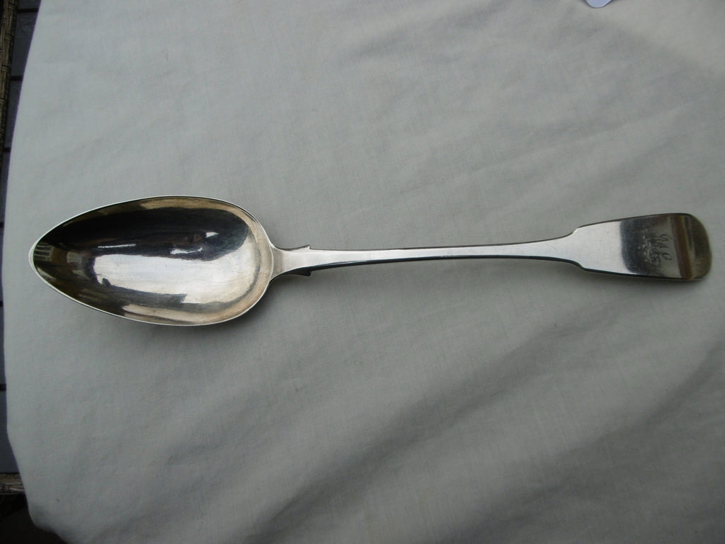 This is a lovely basting spoon made in Newcastle in 1826 by Reid and Sons, it is in very good condition, nice clear hallmarks, it is 29cms long and weighs 83 grams.