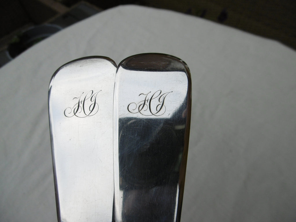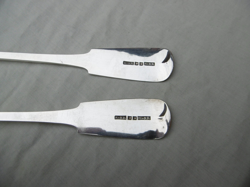 This is a lovely pair of basting spoons made in Perth in c1830 by R&R Keay, they are in very good condition, very good bowls and nice clear Perth hallmarks, they are 32cms long and weigh 240 grams the pair, they have period owners initials in script