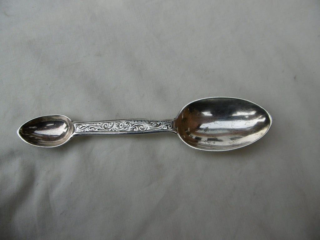 1872 rare silver Medicine spoon by George Adams lovely decoration