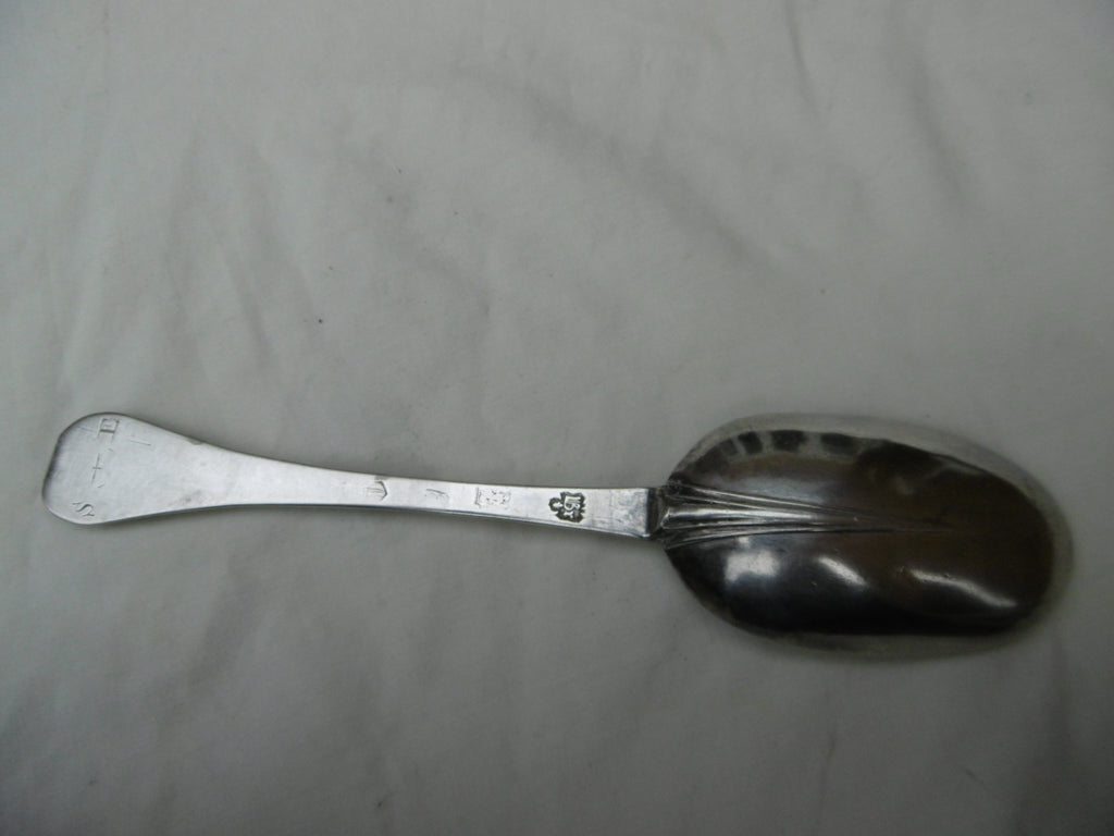 This is a very nice spoon made in London in 1701 by John Broake, it is in very good condition, the hallmarks are very clear maker, rubbed but readable date letter, fine bowl and reeded rat tail, nice period owners initials SE , it is 20cms long and weighs 57 grams.