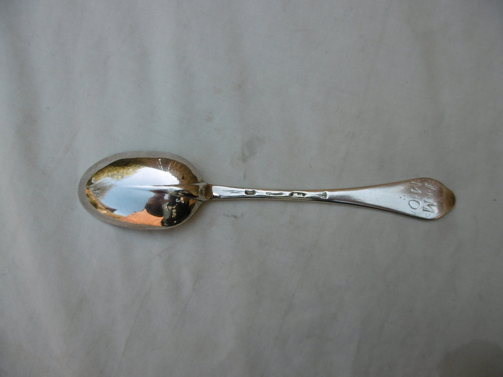 This is a really good spoon made in London in 1709 by Andrew Archer, it is in very good condition, good bowl and rat tail, it has good hallmarks, a bit squashed but readable, it is an unusually small size , 18mm long , its either for a lady or a dessert spoon, it weighs 38 grams, it has lovely period owners initials IM over MO