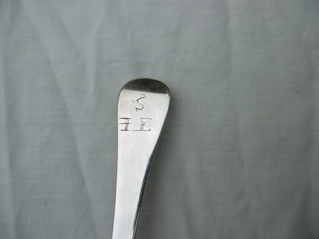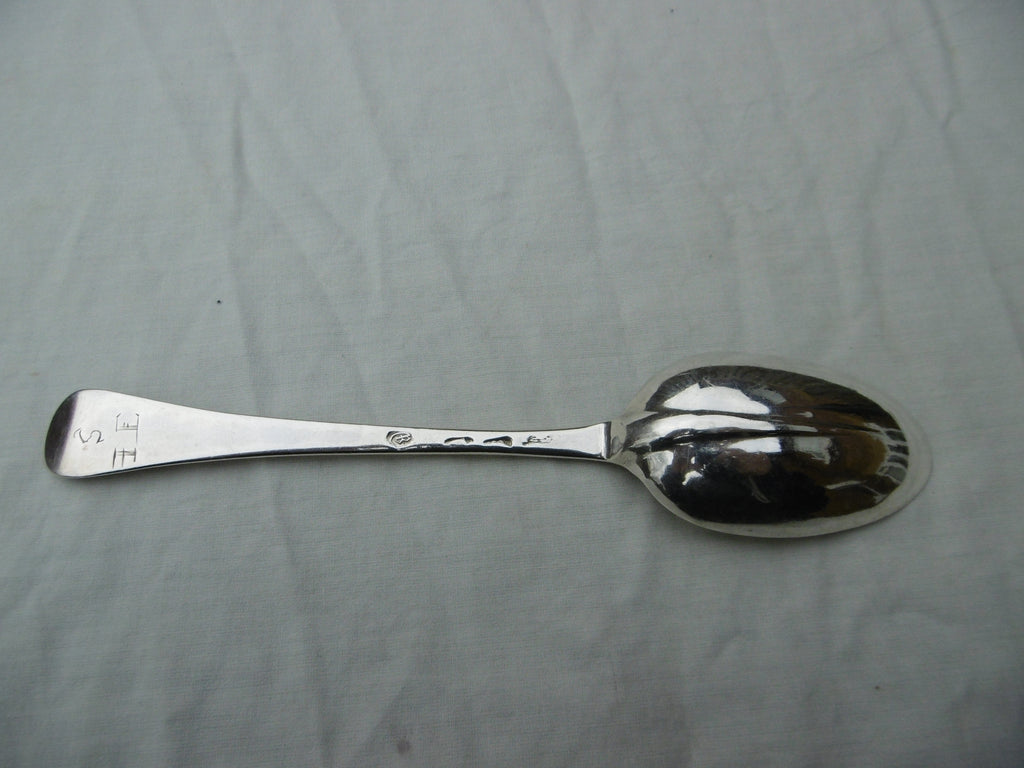 This isa really nice spoon made in London in 1712 by Benjamin Watts. It is in very good condition, fine bowl and rat tail, the hallmarks are excellent date letter and squashed but readable makers mark. It is 20cms long and weighs 55 grams, it has period owners initials S over IE