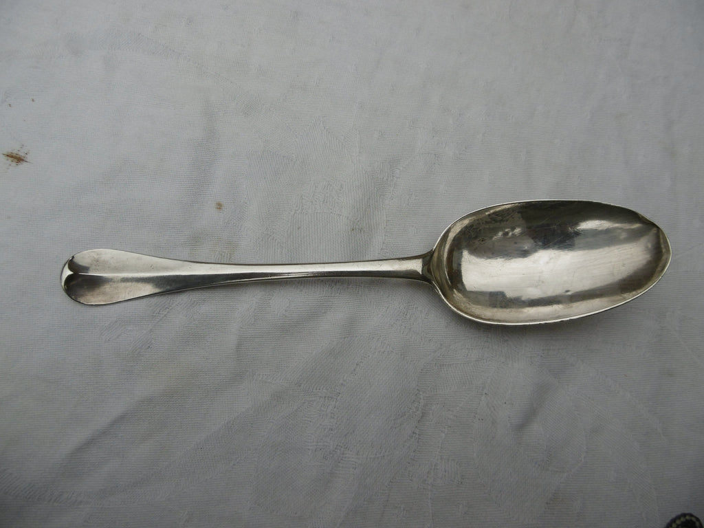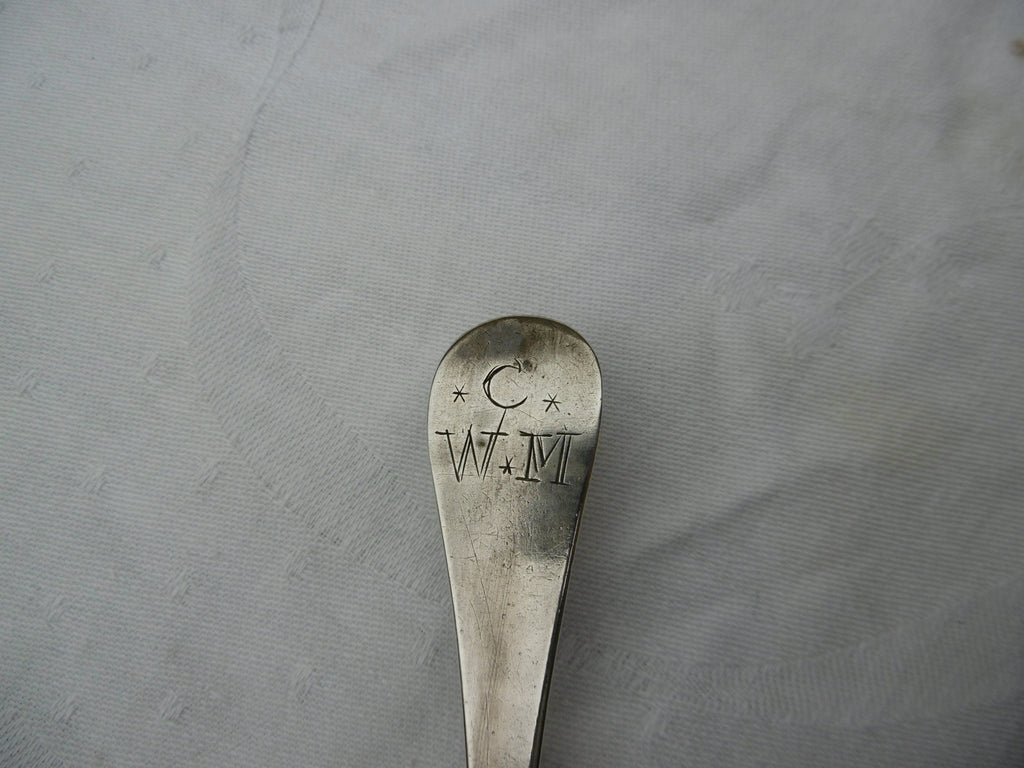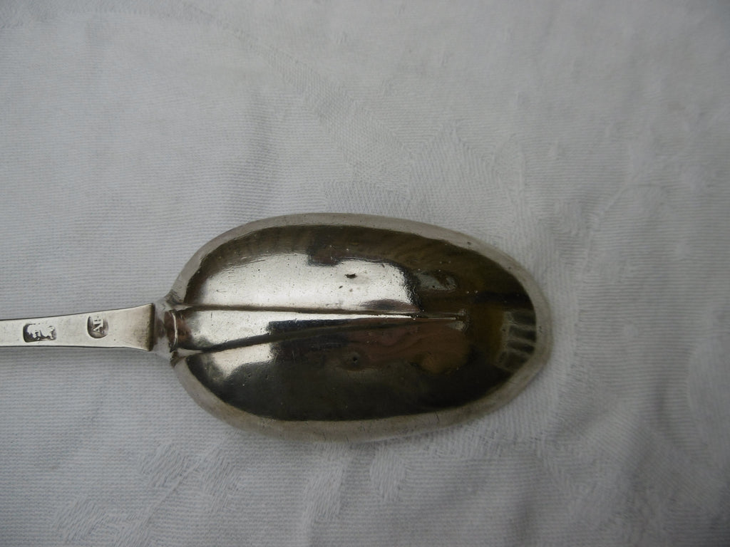 This is a fine Georgian spoon made in London in 1717 by Andrew Archer. It is in very good condition, nice bowl and rat tail, very clear hallmarks, it is 19.5cms long and weighs 45 grams. It has period owners initials C over WM