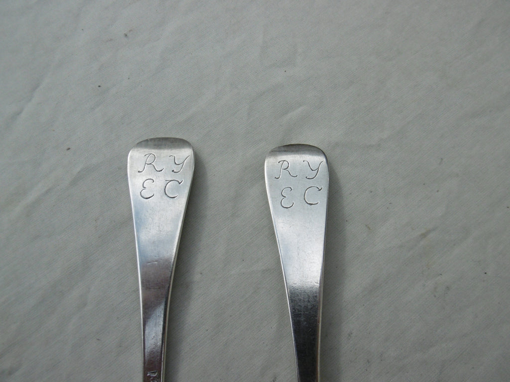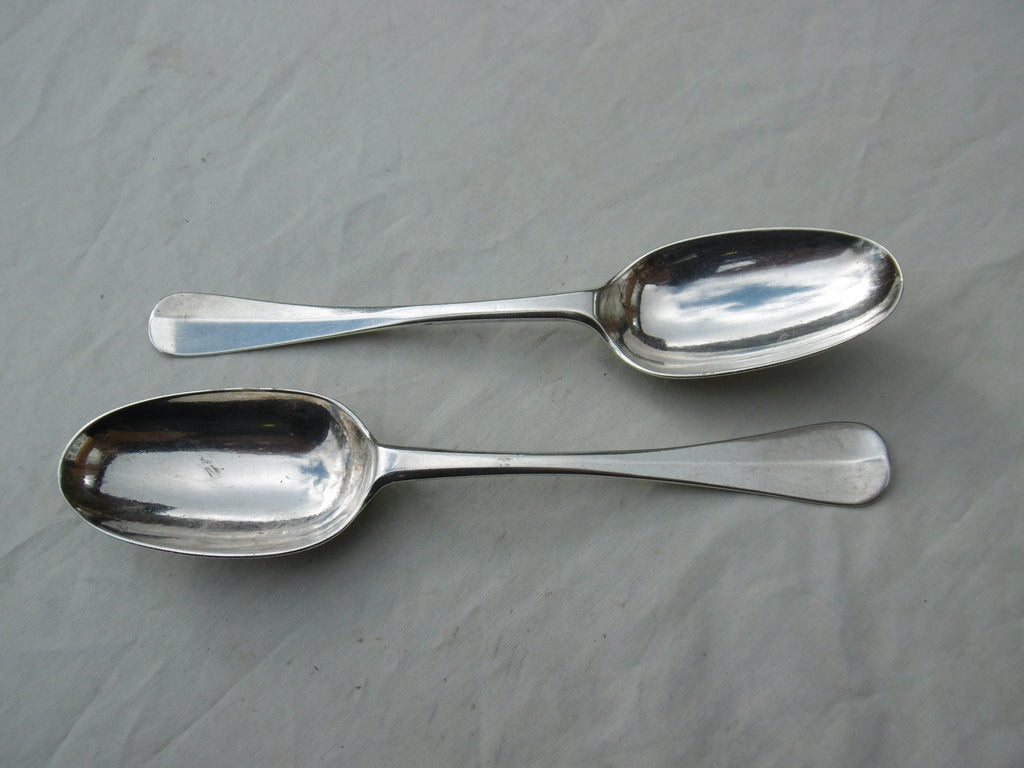 1717 rare pair of George 1st Scottish rat tail tablespoons by James Tait