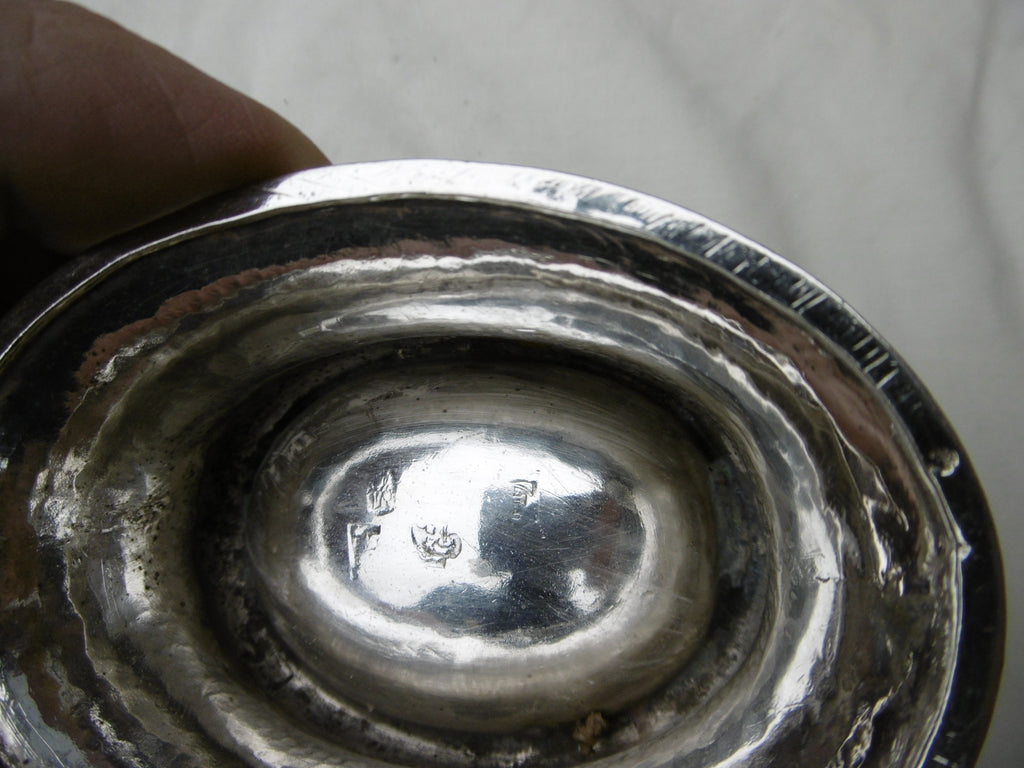 This is a really nice salt made in London in 1721 and is Britannia standard, it is in very good condition, the hallmarks are all good except the makers mark looks like one overstriking another. It is 8cms long and weighs 45 grams
