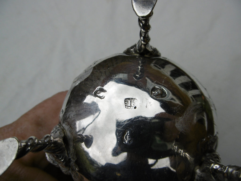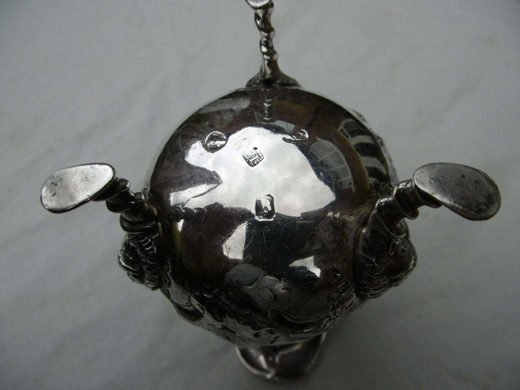 This is a lovely jug made in Dublin in 1748 by unascribed maker IE, it is in very good condition, nice clear hallmarks , it has nice rococo decoration and has 3 Lions head legs, it is 10cms high and weighs 125 grams.