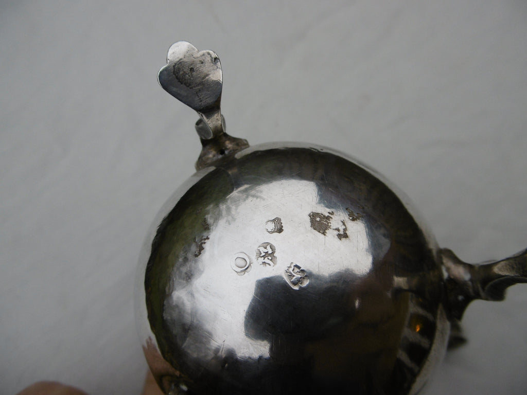 This is a really nice example of a cream jug made in London in 1749 by Maker M over S.It is in very good condition, clear hallmarks. It has a nice handle and feet. It is 10cms high and weighs 83 grams.
