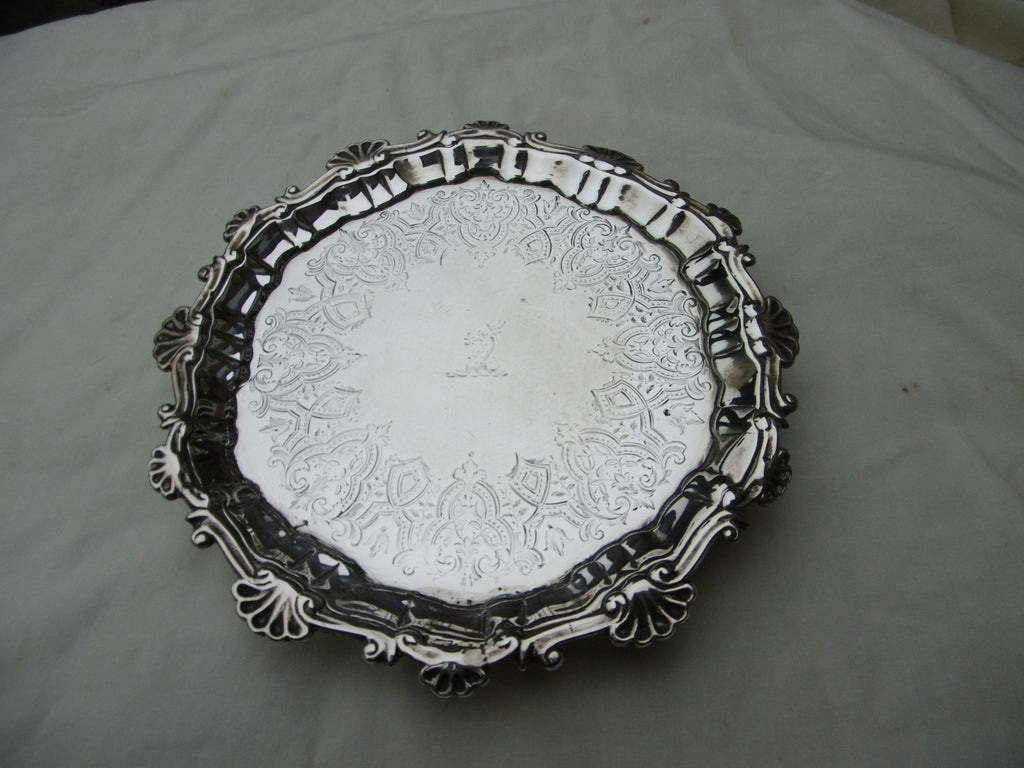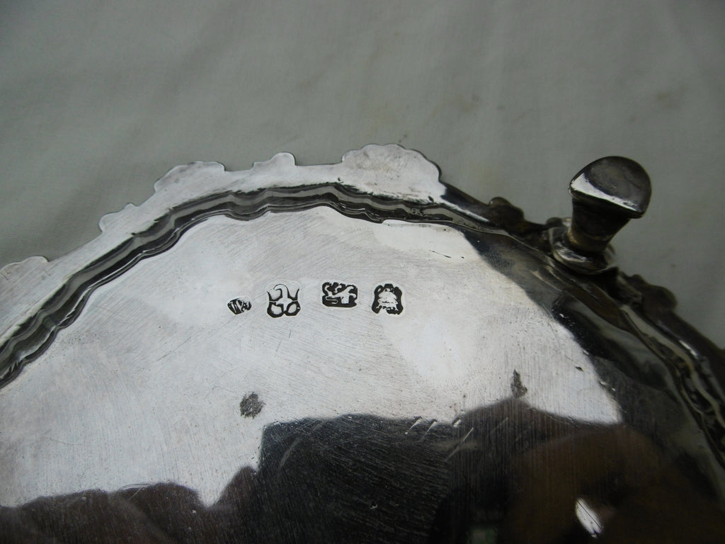 This is a fine waiter made in London in 1754 by well known maker William Peaston. It is in very good condition, nice clear hallmarks , lovely cast border and feet, it has a lovely period Goat crest. It is 15cms diameter and weighs 185 grams.