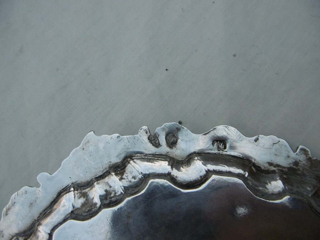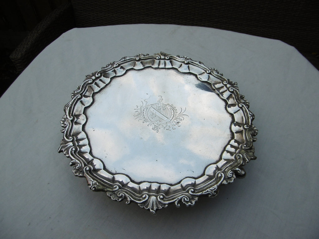 This is a lovely Salver made in Dublin in c1760 by William Homer. It is in very good condition, the hallmarks are deeply struck, they are Hibernia , Harp and maker, no date letter as usual, It has a wonderful Armorial crest. It is 21cms diameter and weighs 400grams .