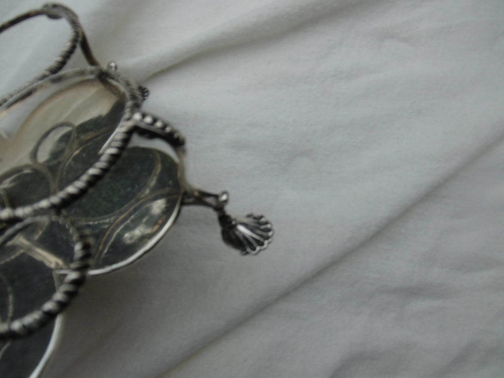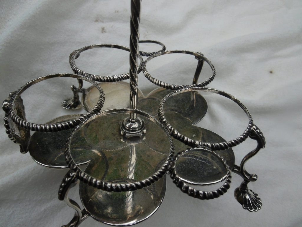 This is a pretty cruet set , the frame was made in London in 1768 by Daniell and Mince, it is fully hallmarked, the bottle are all period and the silver lids are unmarked as usual, the glass has some minor chips and one neck has been repaired but it is hidden under the lid, it is 19cms high and has 320 grams of silver, it does display well and is very usable.