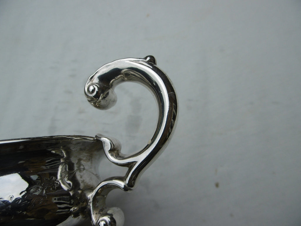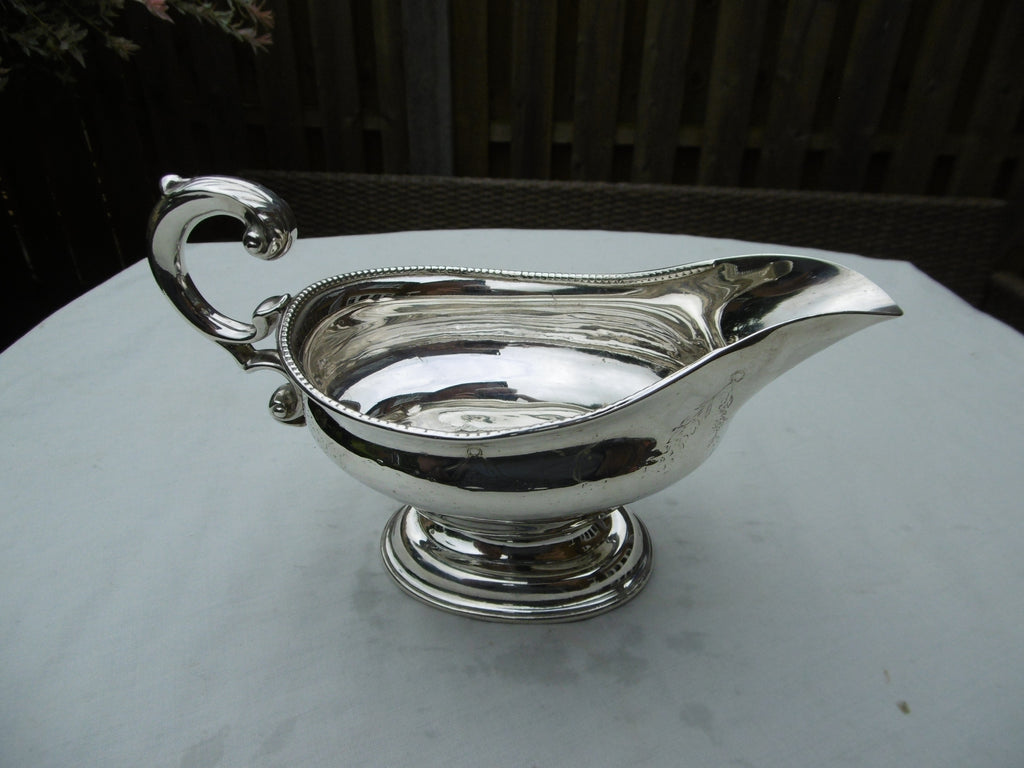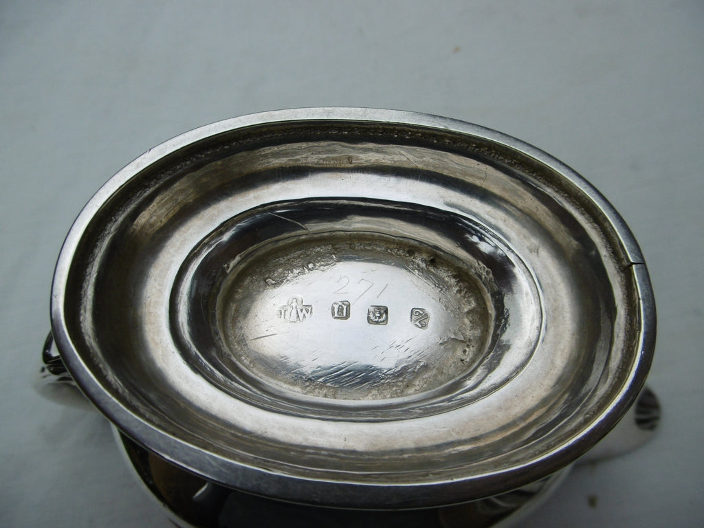 This is a lovely sauce boat made in Edinburgh in 1778 by James Welch, it is in very good condition with nice cast handle and beaded decoration, it is 17cms long and weighs 230 grams.