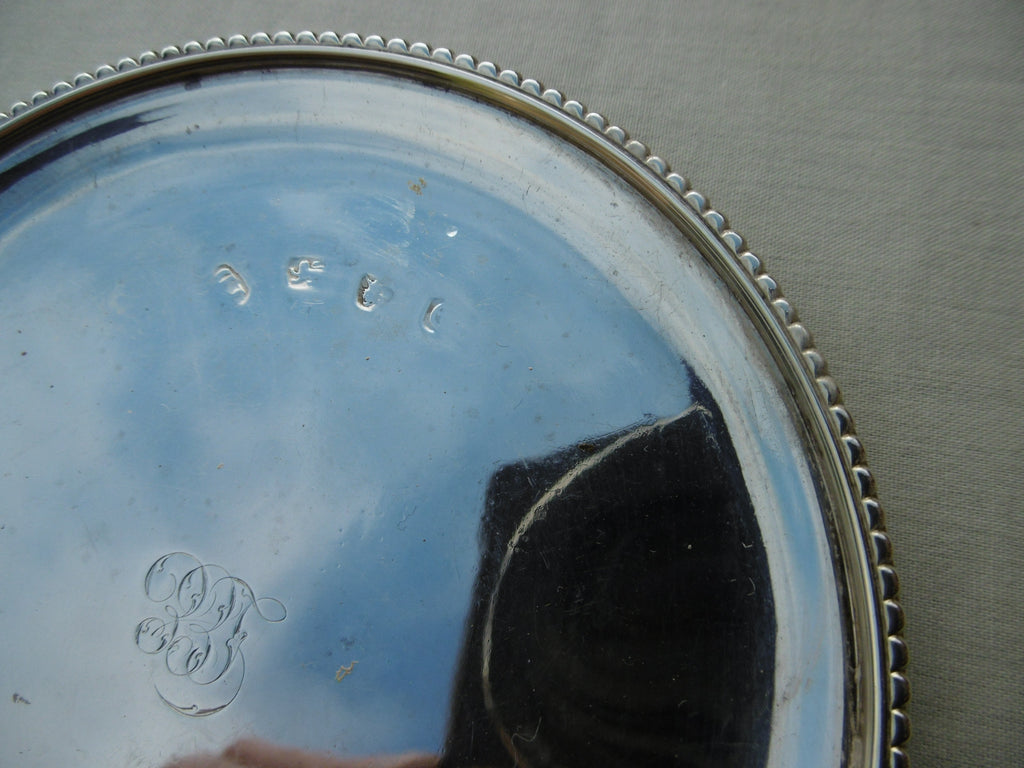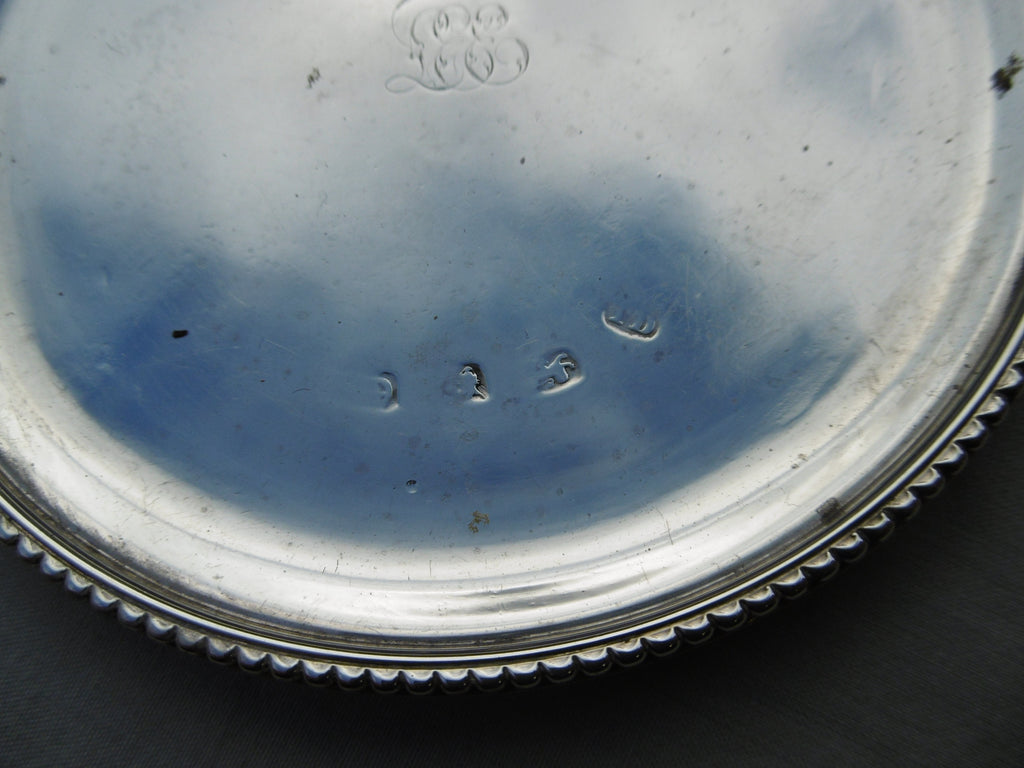 This is a lovely Georgian stand made in London in 1780 by maker TD. It is in very good condition, nice readable hallmarks, it has a lovely beaded border. It is 10cms diameter and weighs 60 grams ,