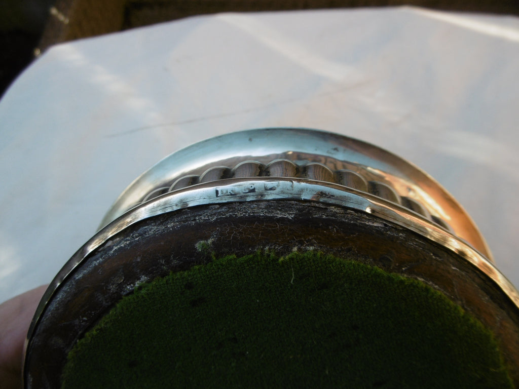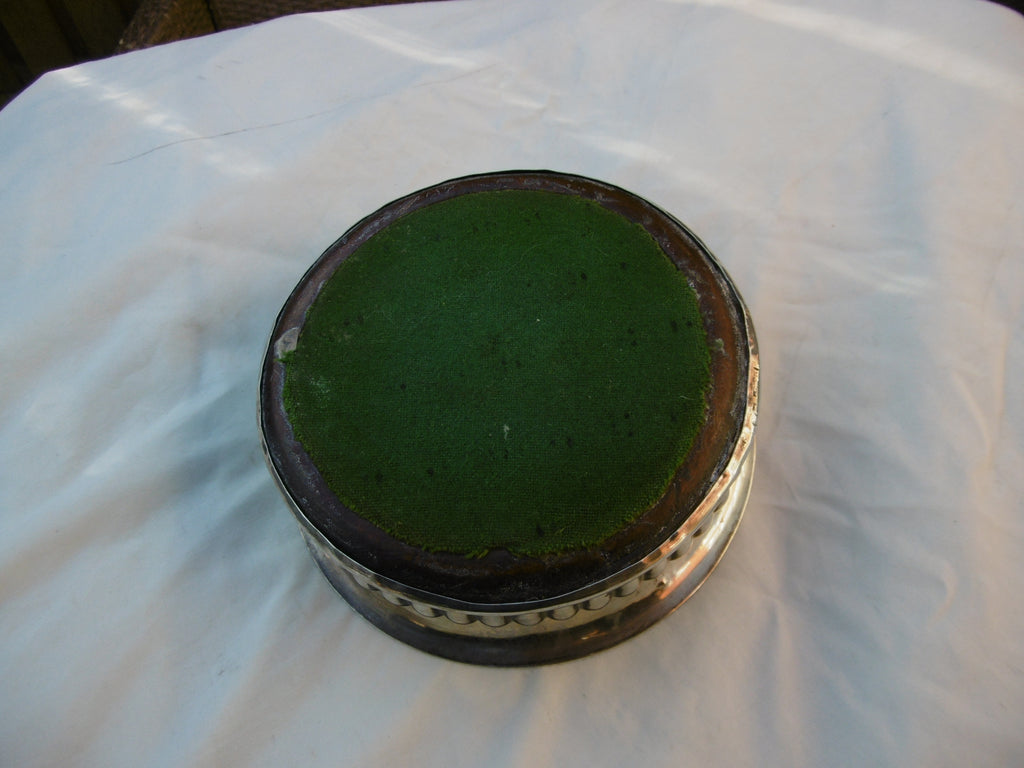 This is a lovely wine coaster made in Sheffield in c1805 by J Roberts & co, it is in very good condition, the hallmarks are typically struck on the edge but I can read everything but the date letter, it it 14cms diameter and has a lovely wooden base,