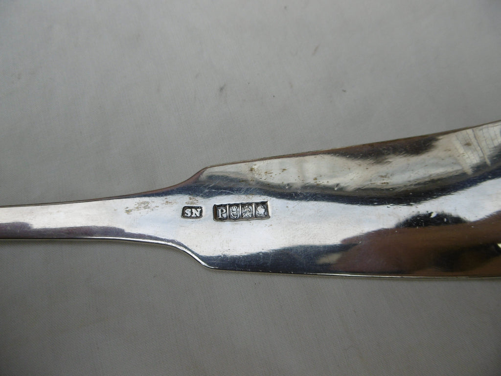 This is an impressive soup ladle made in Dublin in 1811 by Samuel Neville, its in very good condition, nice clear hallmarks, very good bowl with rat tail decoration, it has a lovely period crest of a Fish, it is 37cms long and weighs 236 grams .