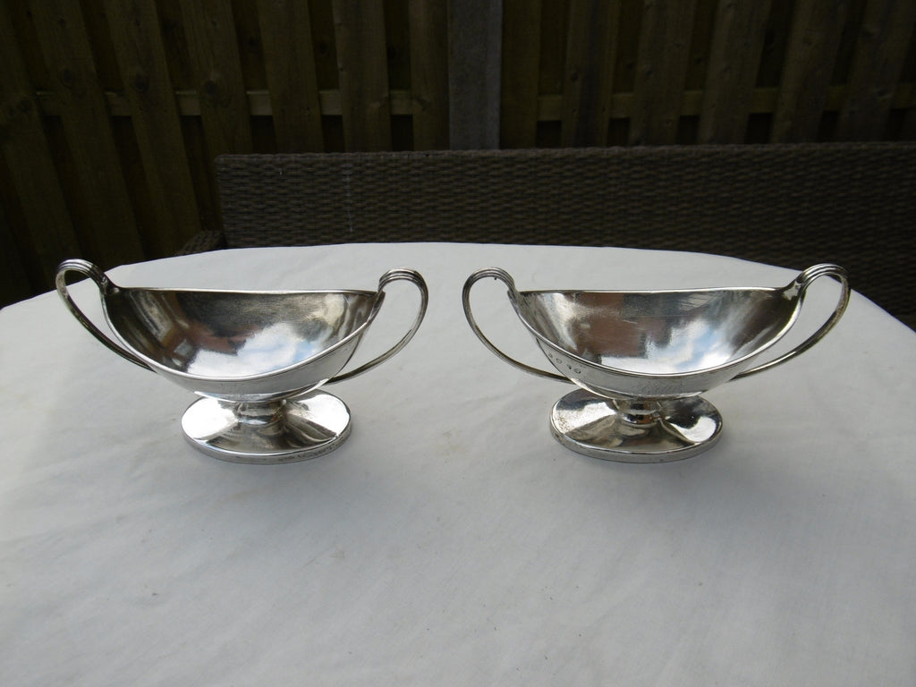 1814 fine pair of Georgian silver pedestal salts by N Hart 212g Bull crest