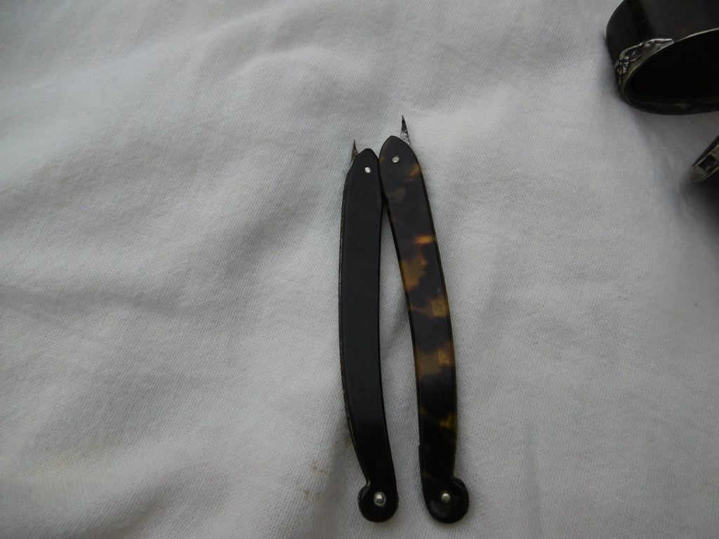 1820 fine Georgian silver mounted Tortoiseshell case containing two razors