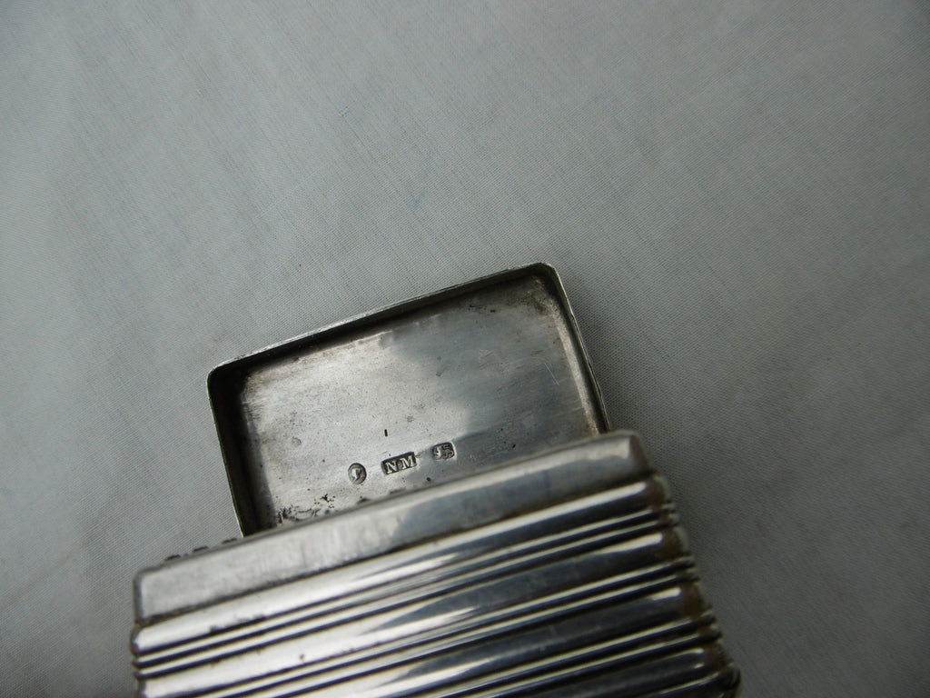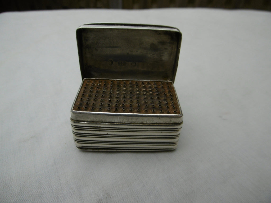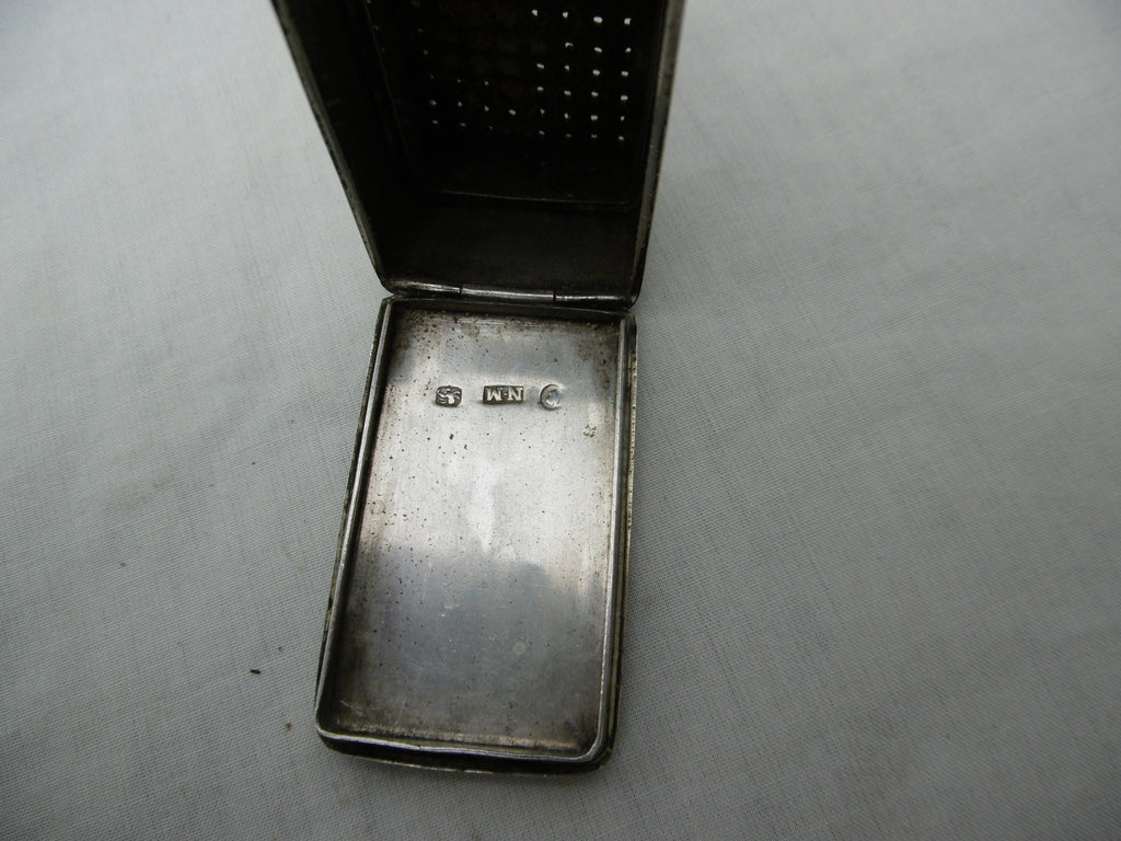 This is an excellent nutmeg grater made in Birmingham in c1850 by Nathanial Mills, it is in very good condition, fully hallmarked on both lids but lacking the date letter, the decoration is unworn and the rasp is in fine condition, it is 5cms long and weighs 41 grams, it has a period Bird crest